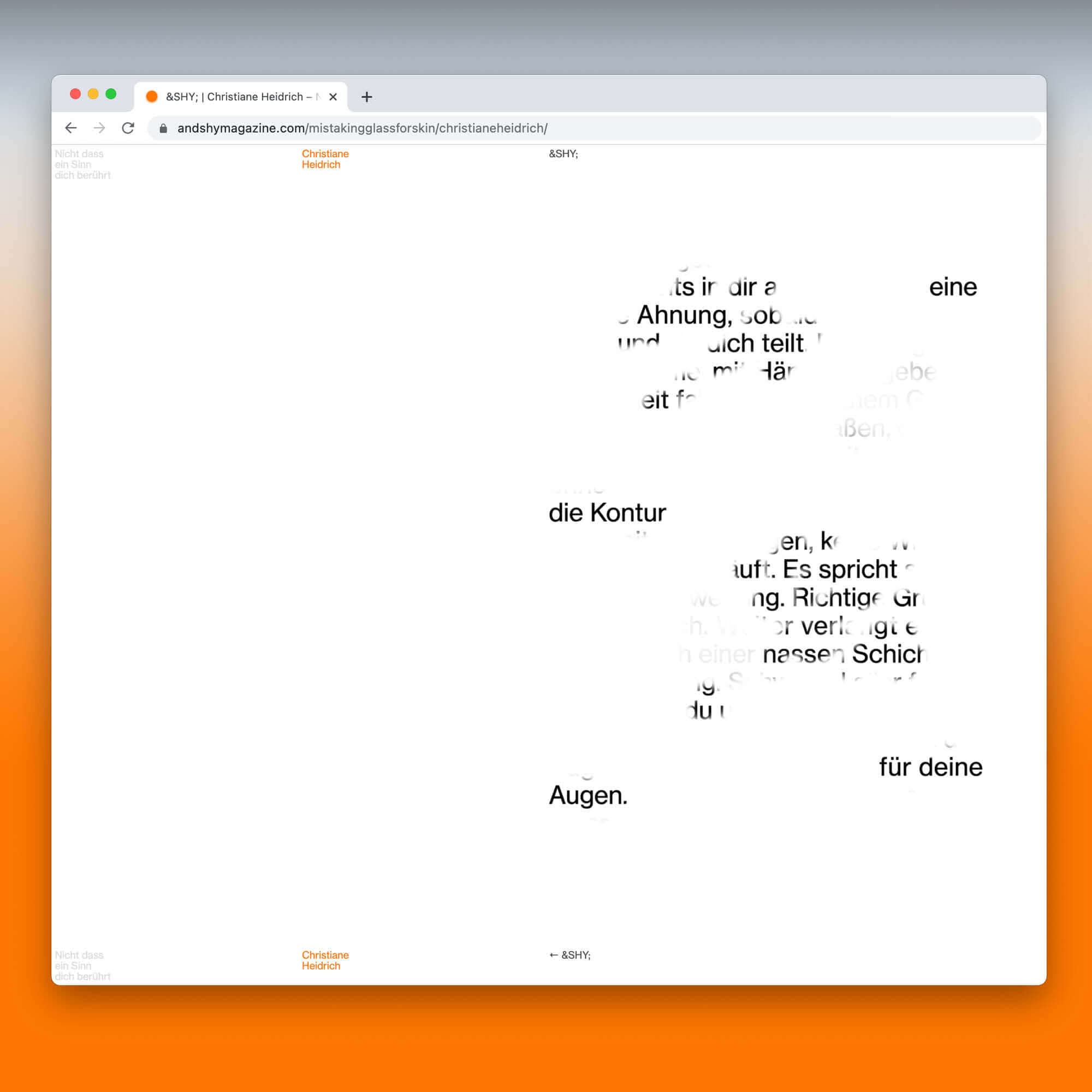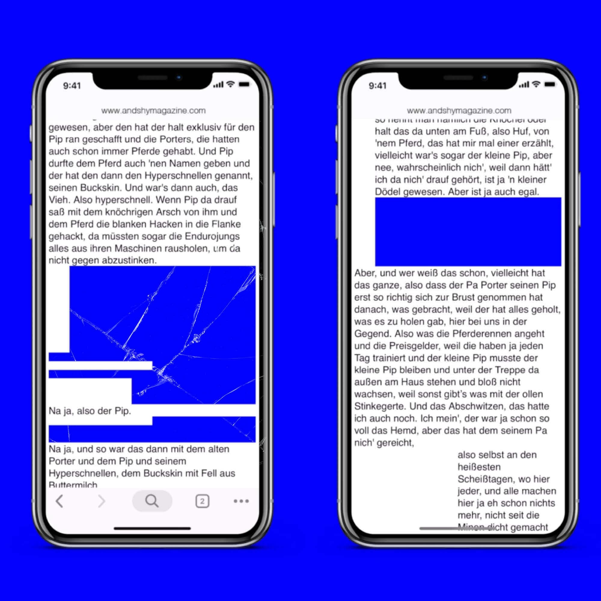 | since 2019 | ­ magazine | Founding of the digital literature magazine ­ | w/ Sophia Rohwetter, Chris Möller, Victor Kümel (Kabeljau & Dorsch) |
