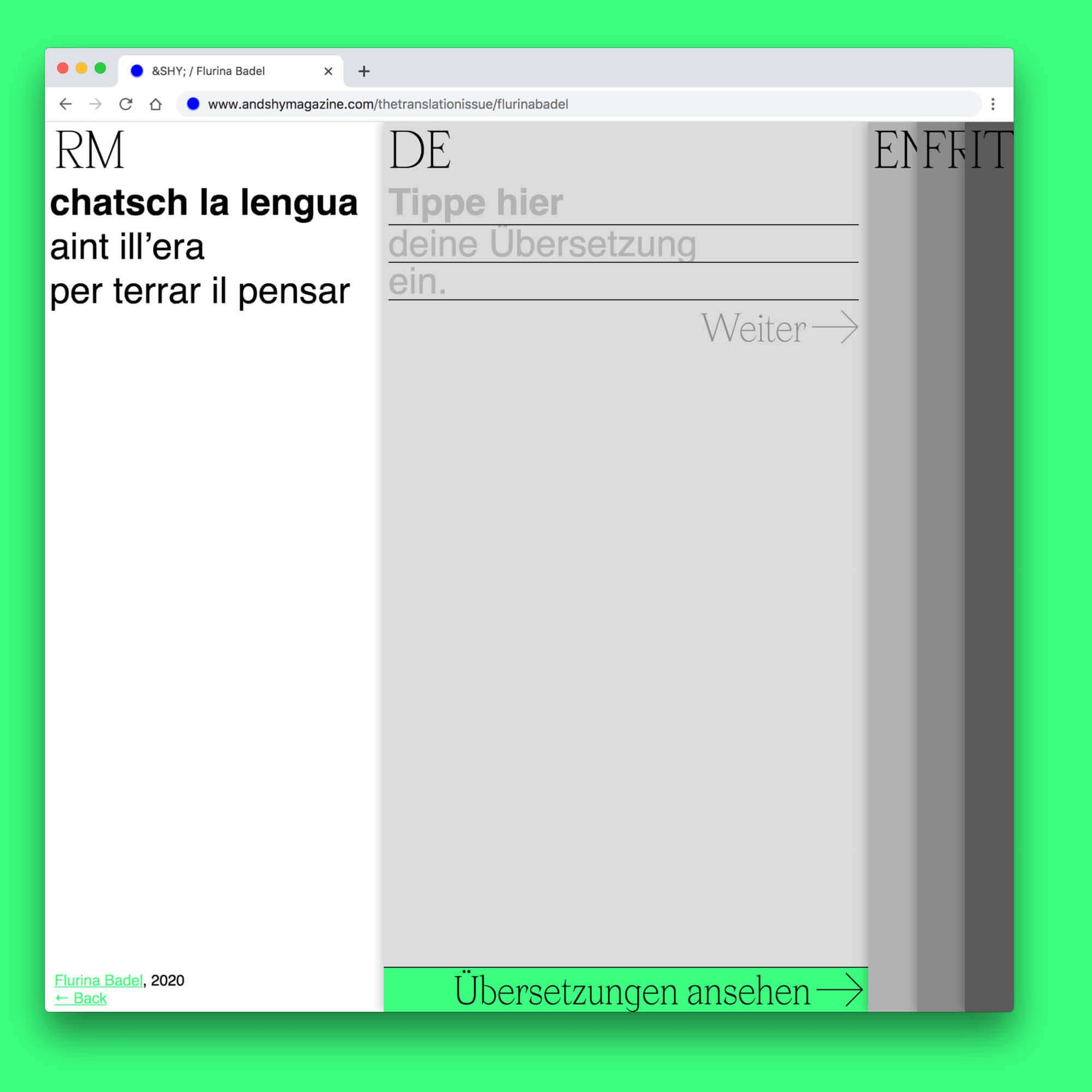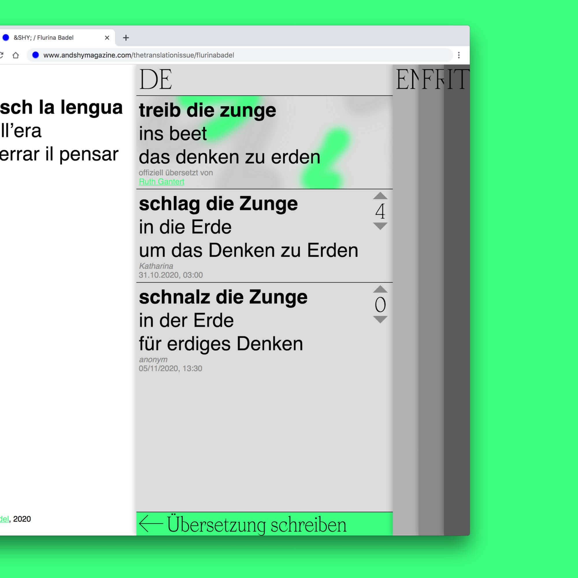 | 2020 | BuchBasel Festival | Cooperation with ­ | for the issue “The Translation Issue” |