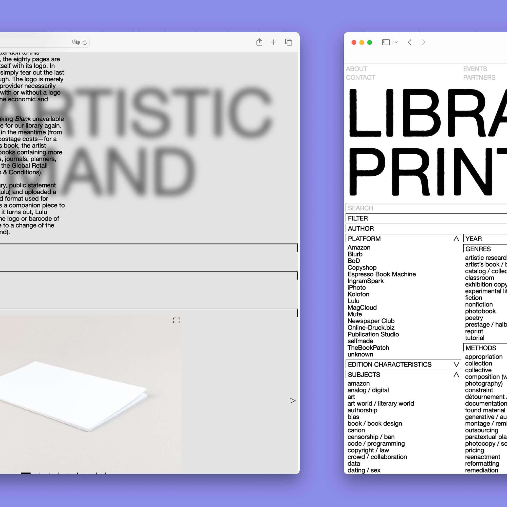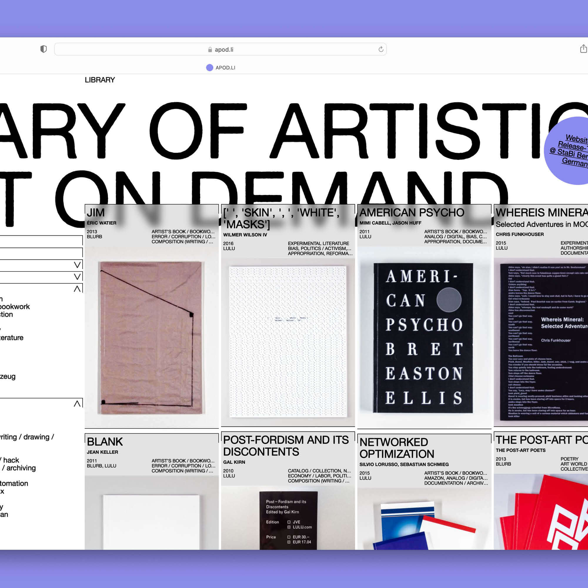 | 2022 | Kunsthochschule Weißensee | PLAN B für Bücher (Book exhibition & discussion) | How do we shape the reading material of the future |