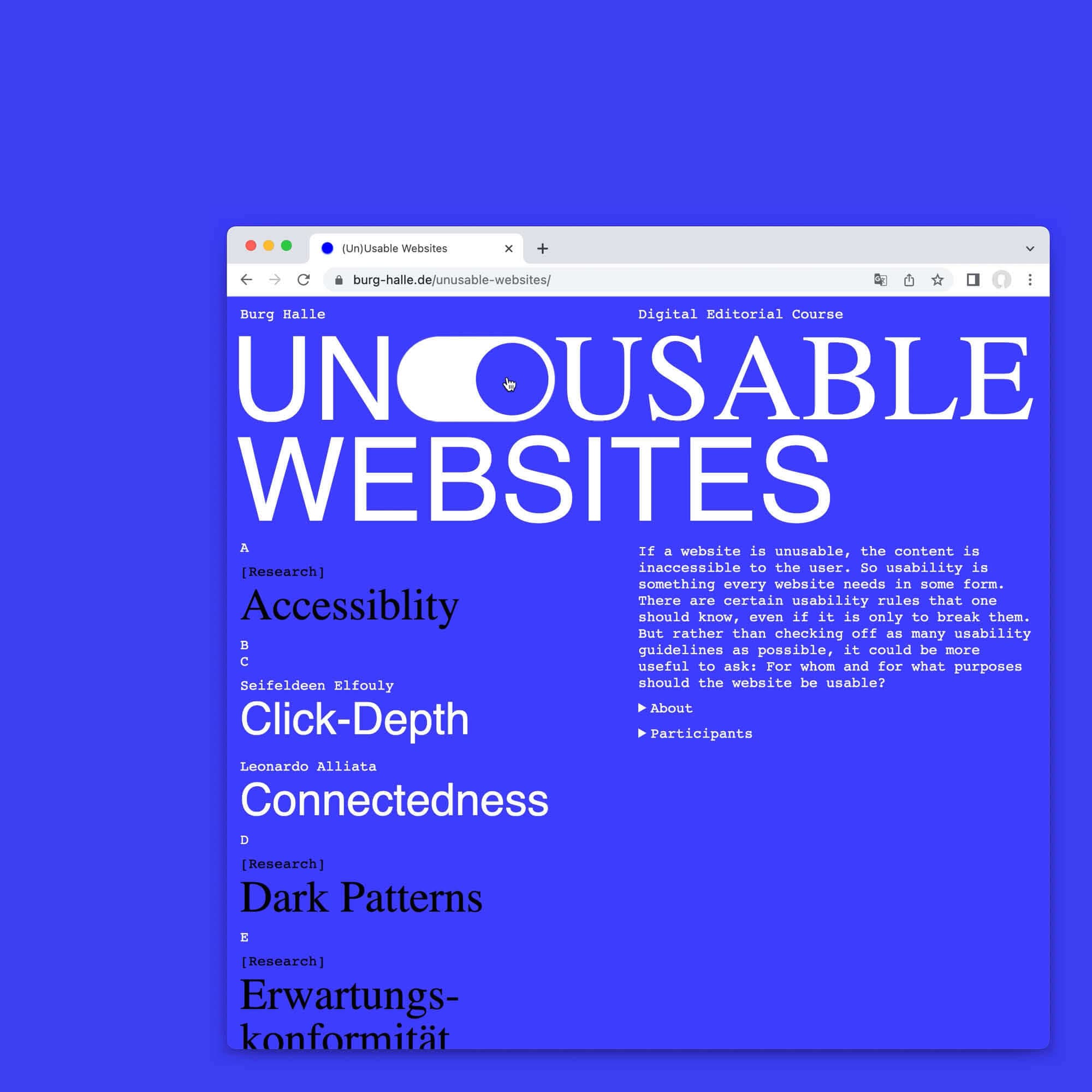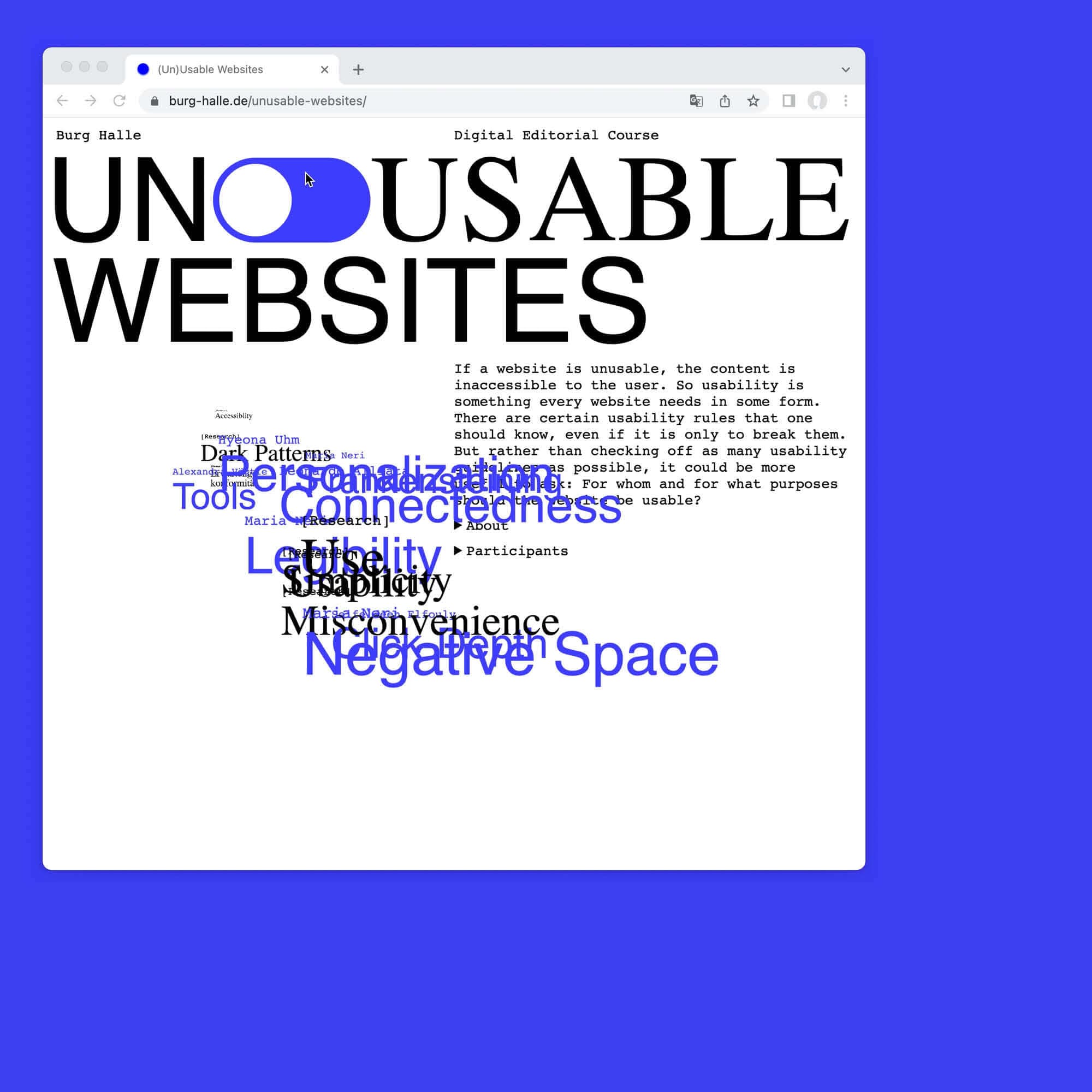 | SS 22 | Burg Giebichenstein Halle | Digital Editorial Course | (Un)Usable Websites | Outcome |